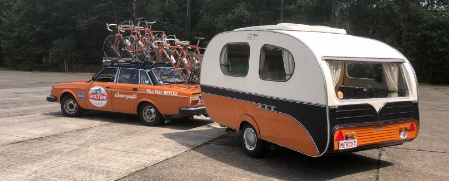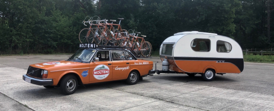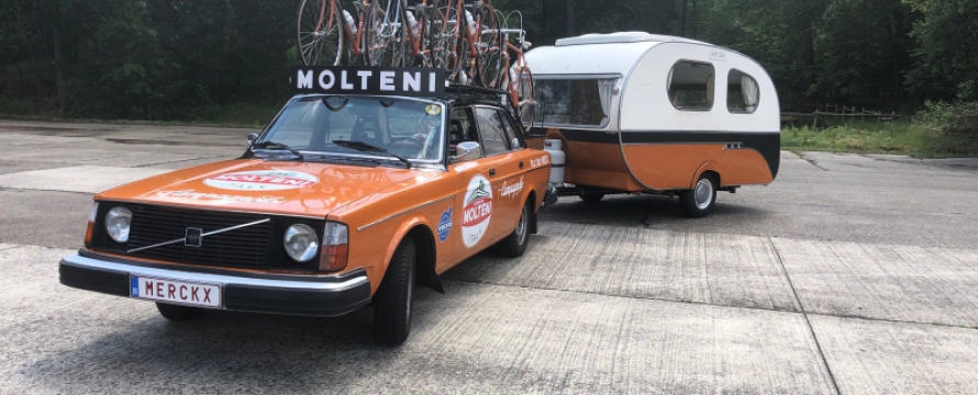 He’s back! De mythische Volvo 244 van team Molteni midden jaren ’70 is terug. In volle glorie en klaar om de renners te ondersteunen in de koers of een tourtocht. Een retrokoers dan toch. Zes stalen rossen, authentieke Eddy Merckxen, staan technisch tip-top in orde om eventuele renners met pech tijdens de rit verder te helpen en er voor te zorgen dat iedereen de eindmeet haalt.